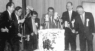 さて、私達の東京支部は昨年10月13日、都心の内幸町・日本プレスセンターで5年ぶりの総会を開き、ふるさとの話や同窓級友の消息に花を咲かせました。出席者は来賓を含め約150名、在京有志が寄贈してくれた樽酒の鏡開きによる景気いい幕開けで開会。東ちづるさん、ポルノグラフイティは都合がつかず残念でしたが、村上洋造、村田英夫両君の手慣れた司会進行もあって会場は大いに盛り上がりました。