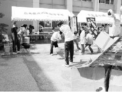 中庭ではPTAの皆さんによる餅つき、さらに3年各クラスの出店や跳楽舞などが行われました。1・2年生は各教室での発表、また茶道部、華道部、書道部、美術部、漫画研究部、囲碁将棋部、写真部、理科部、文芸部、工業クラブ、図書委員会の展示・発表もあり、当日400人あまりのお客さんをお迎えし盛大に行われました。