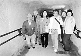 平成19年11月11日(日)天気は曇り模様。広島駅新幹線 口午前8時20分集合。参加者は家族を含めて14名(男 8名、女6名)。読売旅行会社のバスツアーに参加し、 総勢40名で出発。紅葉の見頃は少し早く、11時頃温泉 津温泉街に到着。ここは世界遺産のエリアの一つで道 路の両側には温泉宿が並び、昔は鬱蒼とした草木で昼 間でも狭くて深い谷間は暗かったそうです。情緒豊な 温泉町を自由散策した後、バスに乗り正午過ぎ石見銀 山に到着。龍源寺間歩まではシャトルバスで行きまし た。ここは江戸時代には良質の銀鉱石が大量に採掘さ れたところで龍源寺の坑道は全長 273m。坑内にはノ ミで掘った跡が当時のままの状態で残っており、当時 の様子に思いを巡らせながら、また記念写真を撮った り多いに楽しみ、その後大森地区を自由散策し、途中 三次ワイナリーに立ち寄りワインの試食と買い物を済 ませ、19時広島駅に帰着しました。今回の石見銀山遺 跡は世界遺産の登録直後でもあり、他の世界遺産に比 べ少し物足りなさを感じましたが、新たな世界遺産に 触れる事が出来、改めて歴史の一端に興味が湧いた次第です。