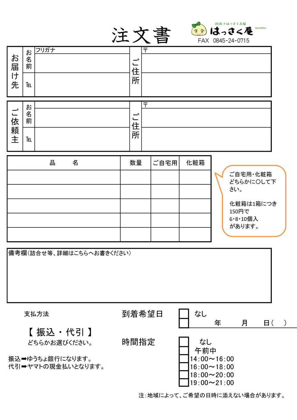 FAXでのご注文