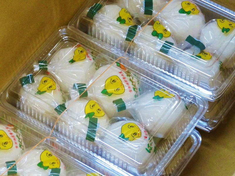 袋にプリントされている、はっさく大福のイメージキャラクター『さくみちゃん』