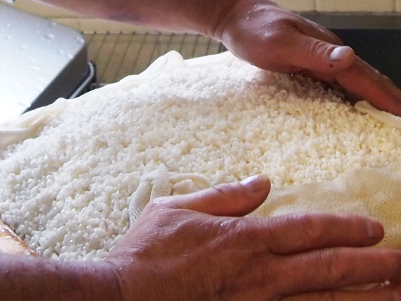 木製の蒸篭は餅米への当たりが優しく、余分な水分を取り除いてくれます。