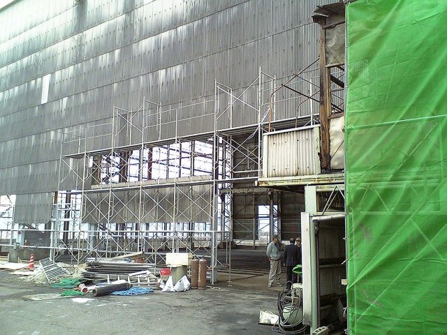 別棟のエンジン整備工場は、まったく無傷で、消火用の水も掛かっていませんでした。