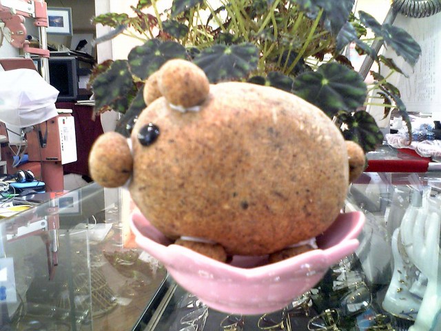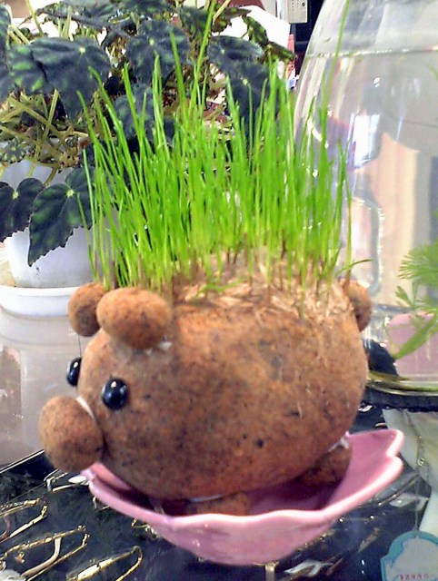 人の頭に、毛が生えてくる、置物もありましたが、こちらは、それのブタさんバージョンです。