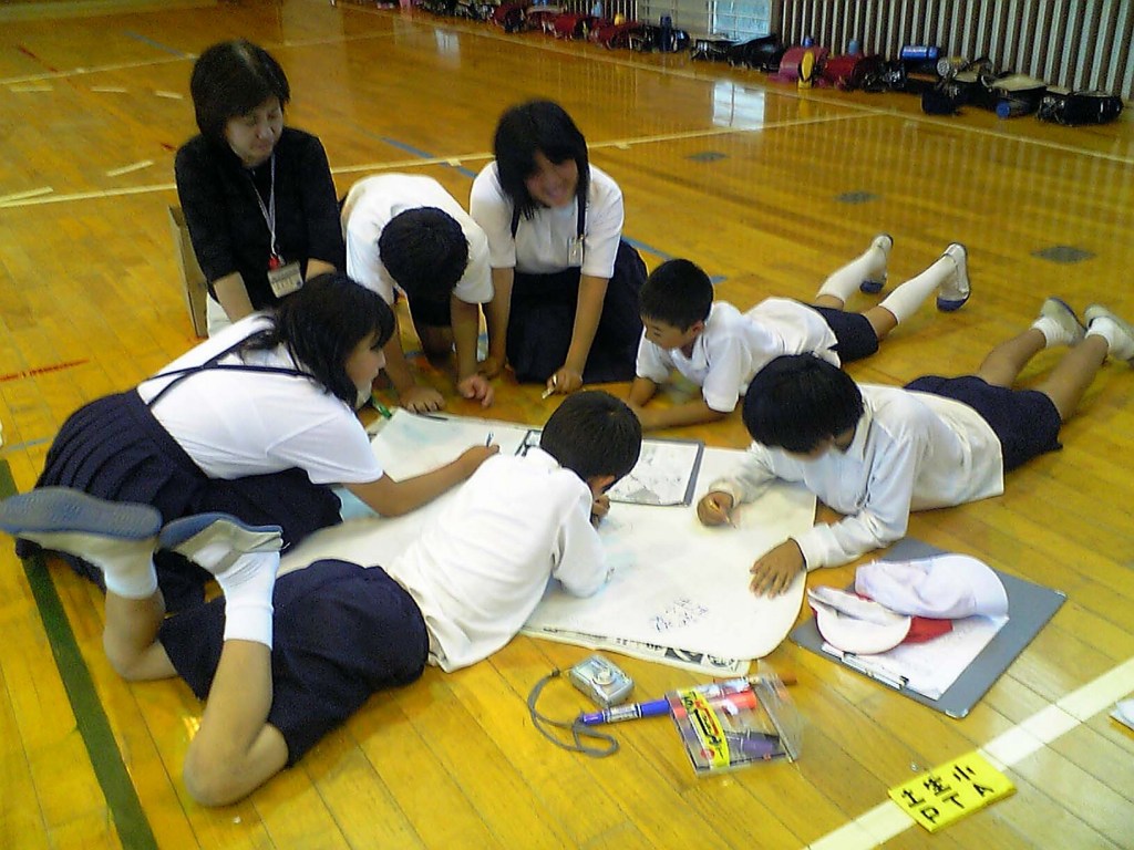 小雨がぱらつく中、学校周辺を、6班に分かれて、現地調査に向かいました。