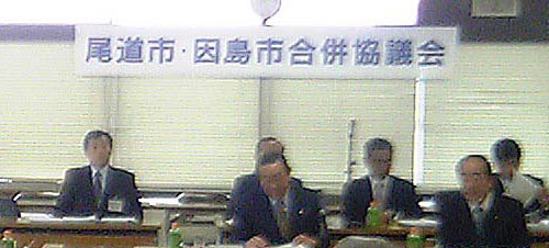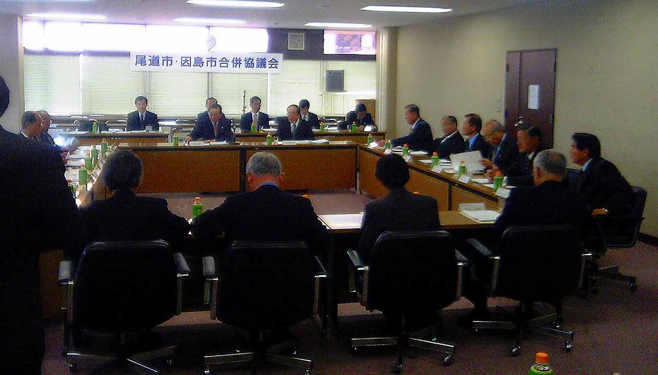 写真は、第1回尾道市・因島市合併協議会が開催された