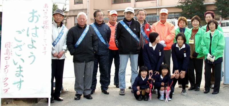 あいさつ運動 2008/01/10 by 村上 光 1 1月10日午前7時30分から、因島ロータリークラブで土生小学校で挨拶運動を行いました。天気は快晴でしたが、放射冷却のせいでしょうか、冷え込んでいました。 地域の、老人クラブや民生児童委員の皆さんと一緒に挨拶をすると、すがすがしい気持ちになりました。老人クラブの会長さんと、合併後の団体の運営について、寒さに震えながら、お話しました。