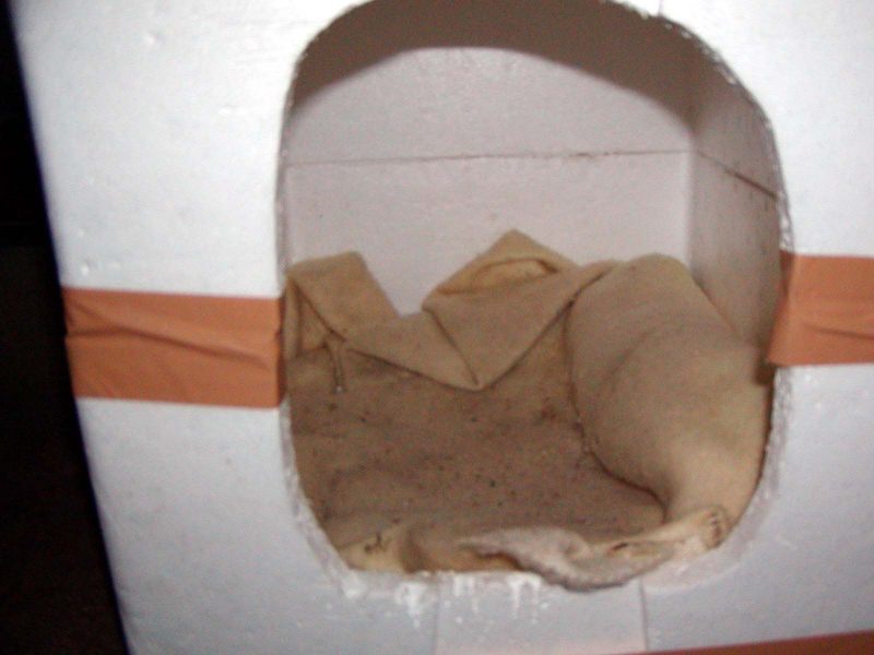 コリンの小屋は、我が家の基礎に穴を開けて、その中に木箱を入れてあります。