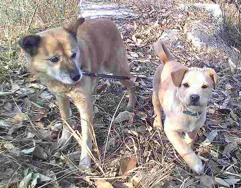 ポケットの犬のおやつに釣られて、2匹が近づいてきました。