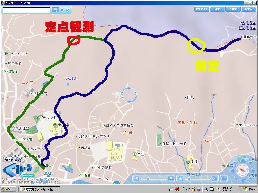 散歩 2008/03/08 by 村上 光 0 3月8日朝の散歩に行きました。因島公園の遊歩道の椿の1本のツタの掃除をしました。ほぼ散歩マップの黄色の剪定のところです。定点観測からの写真です。赤の定点観測土曜日なのに、今日も日立会館の工事の音がひびいてきます。コリンは2度ほどで、ばてて、へたり込んでいました。 最近の散歩マップです。青線が往き。緑線が帰り。椿の剪定をするときは、テレビ塔までは行きません。