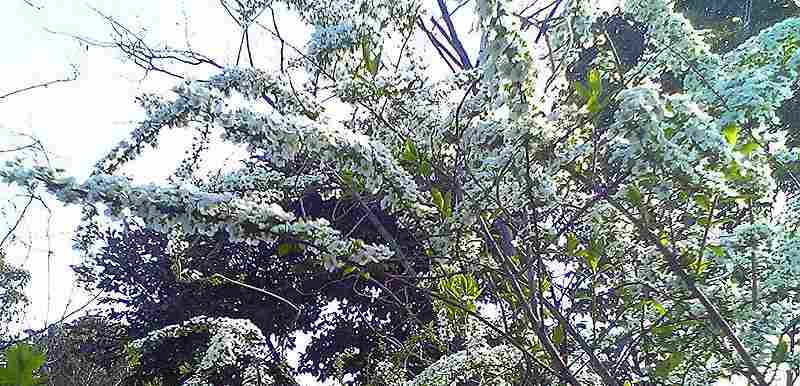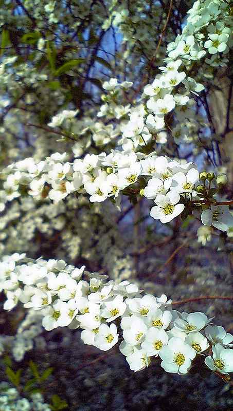 散歩 2008/04/04 by 村上 光 0 4月4日朝の散歩に行きました。定点観測場所からの写真です。毎日だと、ほとんど変化がありません。続けるかどうか、思案中です。 因島公園の遊歩道コースの中に、テレビ塔と、あと二つ小高く盛り上がった、丘がありますが、一番北側の低いほうの、頂です。八十八箇所巡りの石碑があります。 草で隠れて、何番目のお寺か分かりません。 こちらでは萩の花でしょうか。白い花が真っ盛りです。…「ユキヤナギ」でしょう。とのご指摘がありました。 白い花が綺麗です。