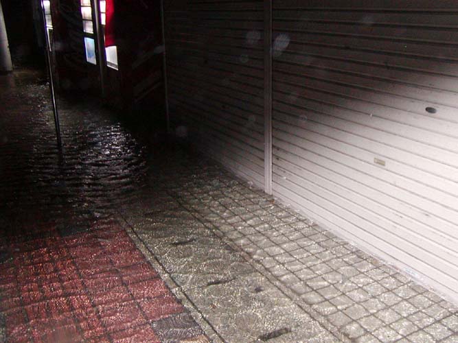 精工堂の、おもてのシャッターまで、水が来ました。
