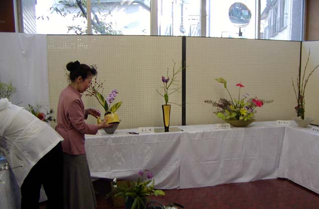 生け花の展示は、水分や温度の変化で