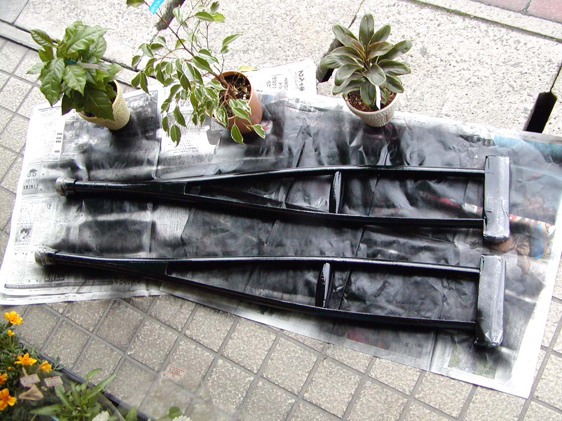 脇当ての取替えとあわせて、色が剥がれているので、塗りなおしもたのまれました。