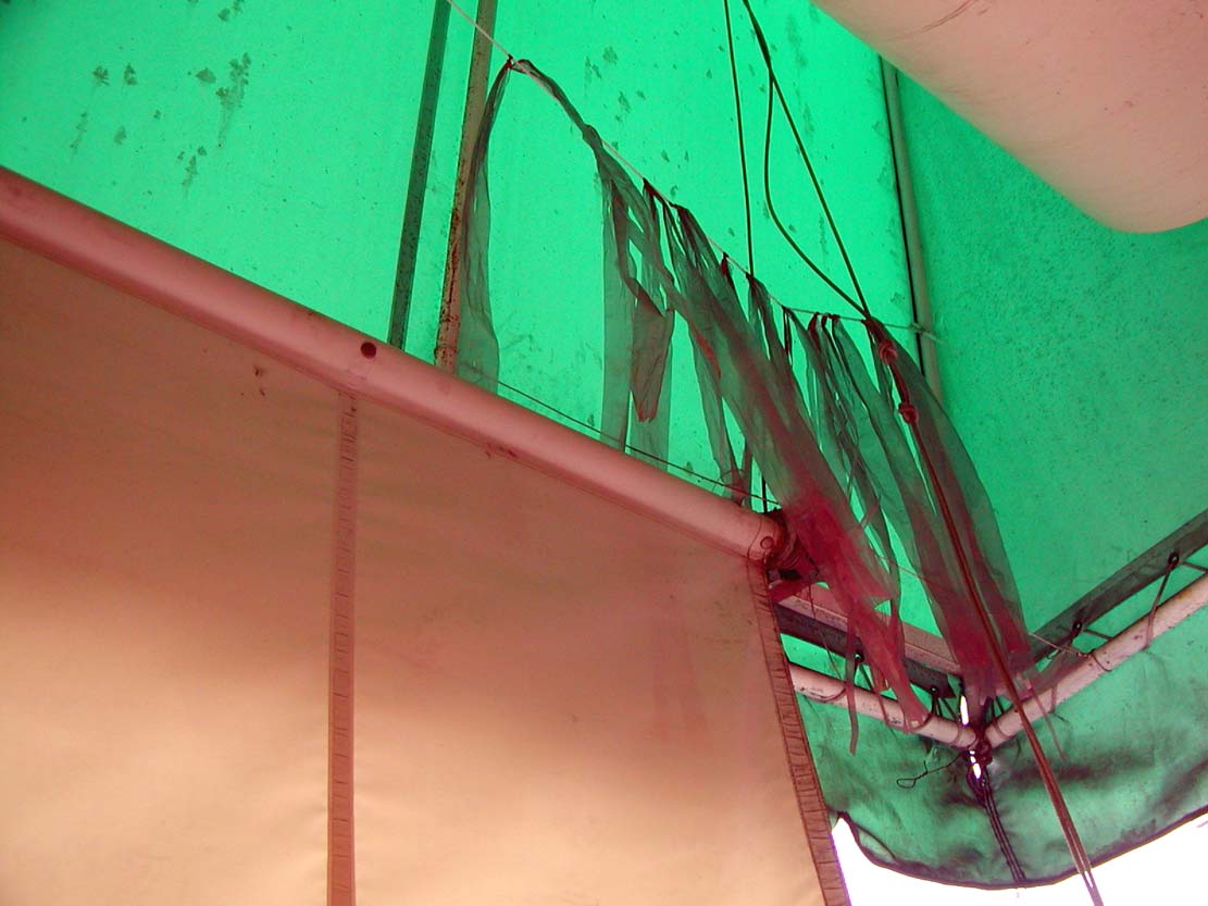 塗装作業のすぐ上に、巻き上げ式のテントがあるのですが、季節柄ツバメが巣を作りに来て、困っています。