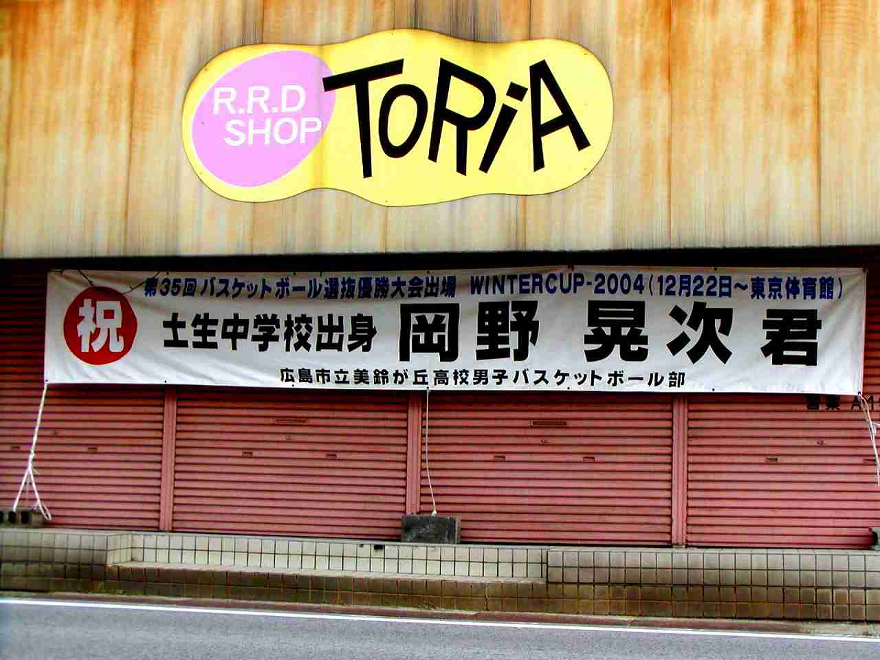 土生中学校出身の岡野晃次君が、12月22日に東京体育館で開催されるバスケットボール全国大会出場の横断幕が掲げられました。