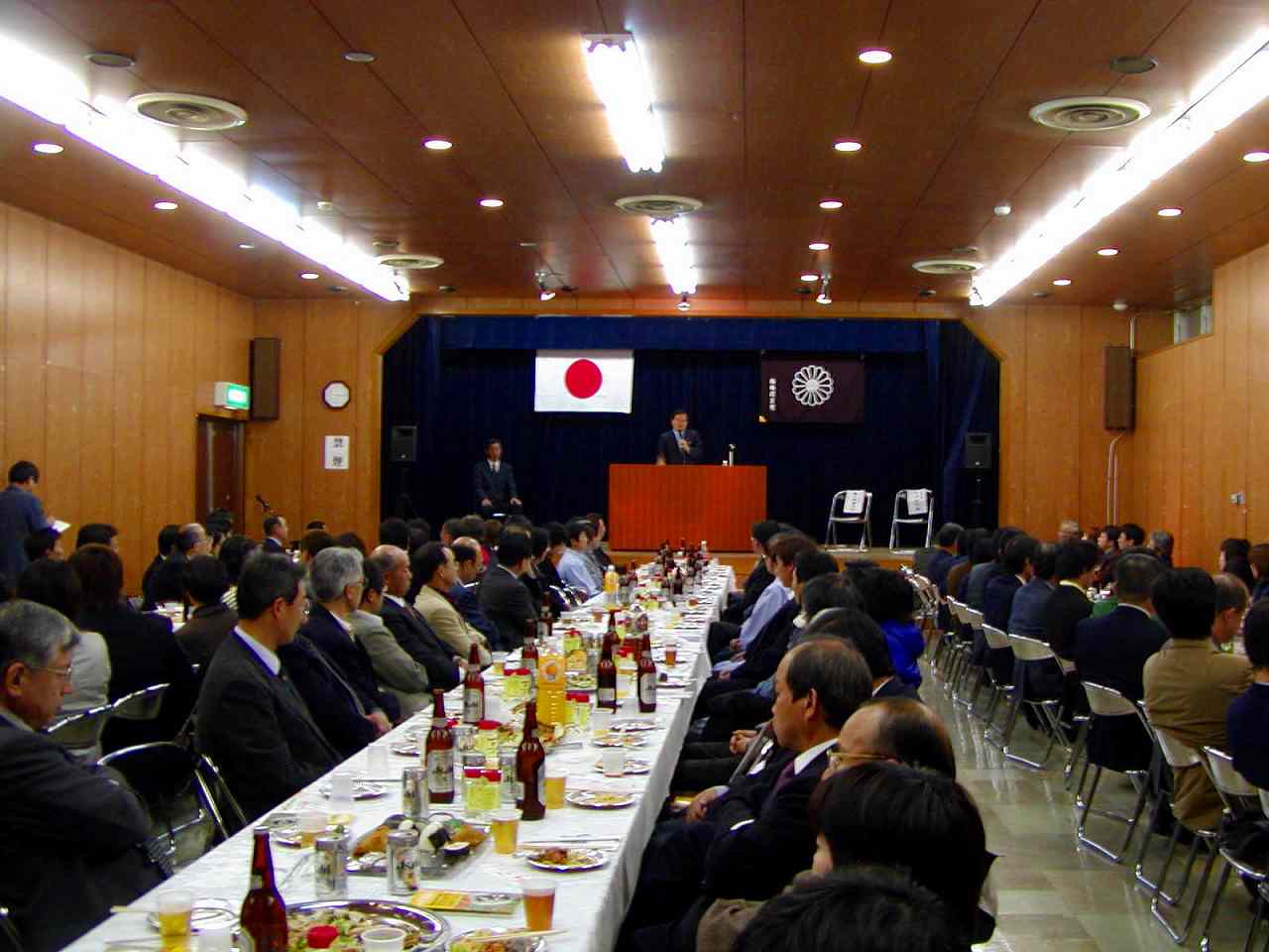 H16年11月20日午後6時から因島市民会館中ホールにて開催された、自由民主党青年研修会の講師として、亀井静香代議士が来因され、熱弁を振るわれました。