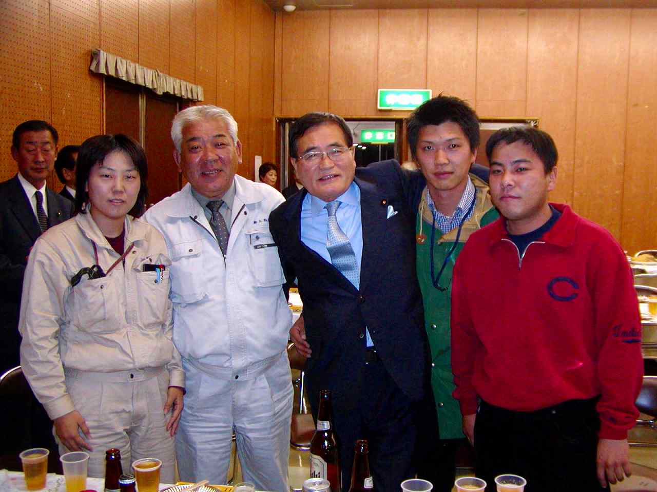 参加者と親しく、懇談する中で、亀井代議士の人柄に、親しみを感じる参加者から、写真撮影を求められると、気さくに応じられました。
