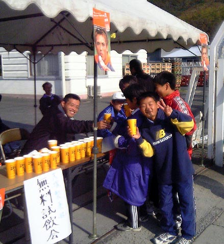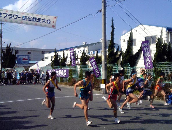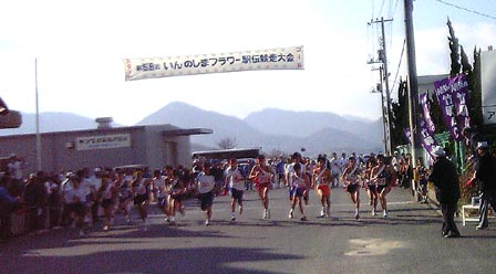 フラワー駅伝パートⅡ 2004/11/29 by 村上 光 0 広島県警から白バイも応援に駆けつけていただきました。因島警察も全面的なご支援をいただきました。 因島飲料からは、スポーツドリンク無料試飲コーナーを提供していただきました。小丸君、ご苦労様でした。 スタート前の三庄チームです。約束どおりインターネットに載せましたよ。 一般Aは、すごいダッシュでした。 時間をおいて、クラス別にスタートしていきます。