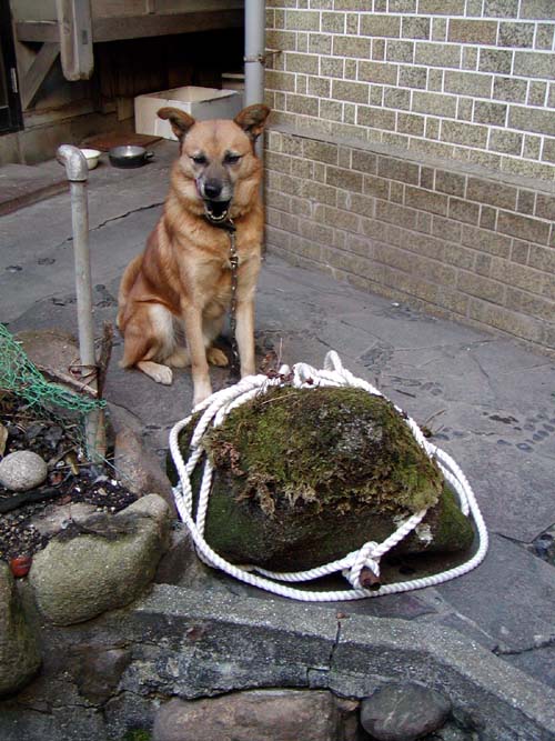 真ん中にある島に見立てている石を、ロープを掛けて、移動しました。