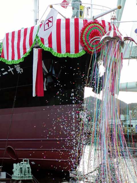 その後、寒風にさらされながら、進水式の模様を撮影しました。