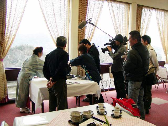 その頃、因島ロッジでは、タコを使った水軍なべの撮影が順調に行われました。