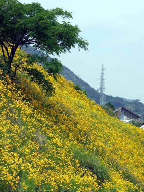 芸予情報センターの進入路の、周辺に黄色い花が、綺麗に咲いていますが、花の名前は「オオキンケイギク」でいいのでしょうか。