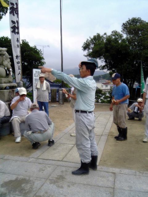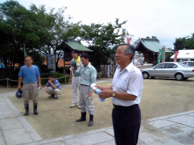 「いつも、ご苦労様です。雨のため、テントや幕と提灯は14日に、集まれる人が