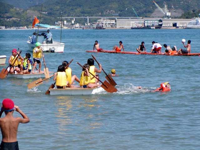 平成17年8月7日日曜日、100人以上の遠泳が、豊田郡瀬戸田町で行われました。