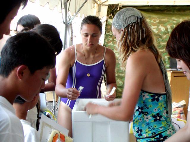 付き添いの大人は、日除けテントの下でぐったり、でも、子供たちは元気いっぱいです。