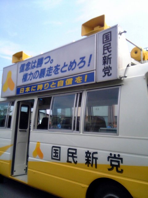 ウグイスさんは、街宣車が珍しいので携帯電話で一生懸命写真を写していました。