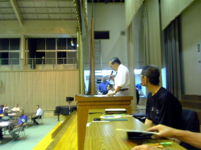 会場は蒸し暑く団扇が配られました。