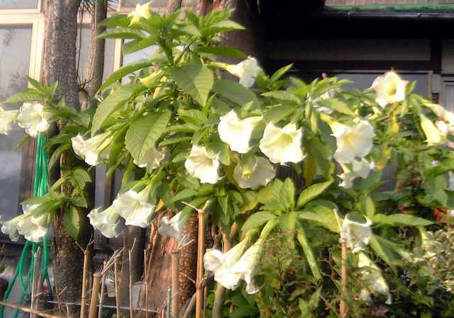 エンジェルトランペット 2005/11/27 by 村上 光 0 11月27日郷区のお宅でエンジェルトランペットの花が見事に咲いていました。通常は9月頃咲くことが多いのですが、今年は暖かいせいか、因島の各地でまだ見事に咲いています。異常気象が続きますが、何か良くないことがおこりそうな不安を感じます。