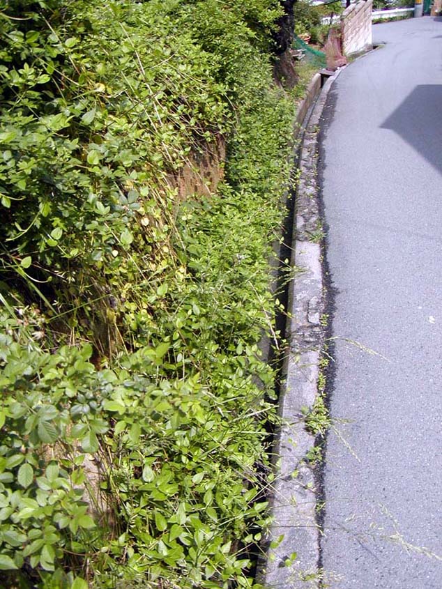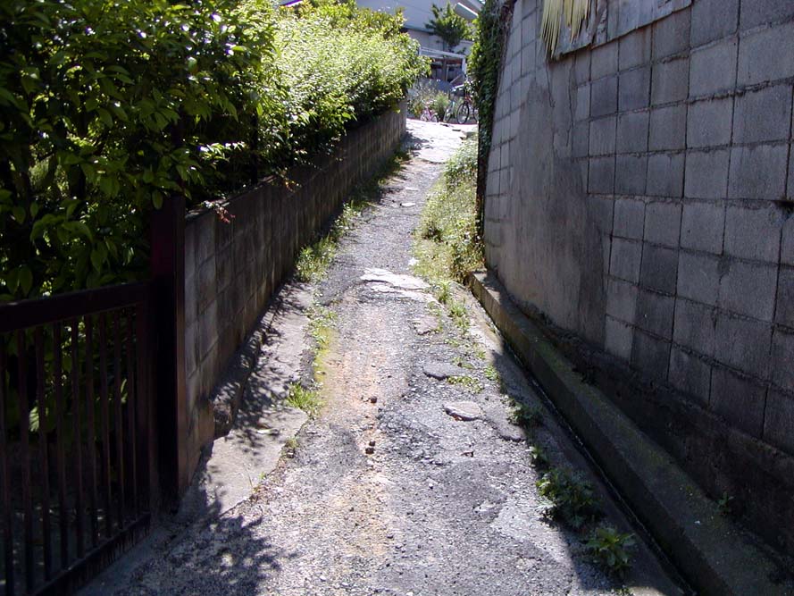 つづいて、山に入っていく道で、舗装がほとんどはげています。