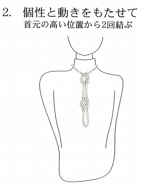 首元の高い位置と、少し下の2カ所で結ぶと、個性的で動きが出ます。