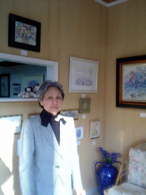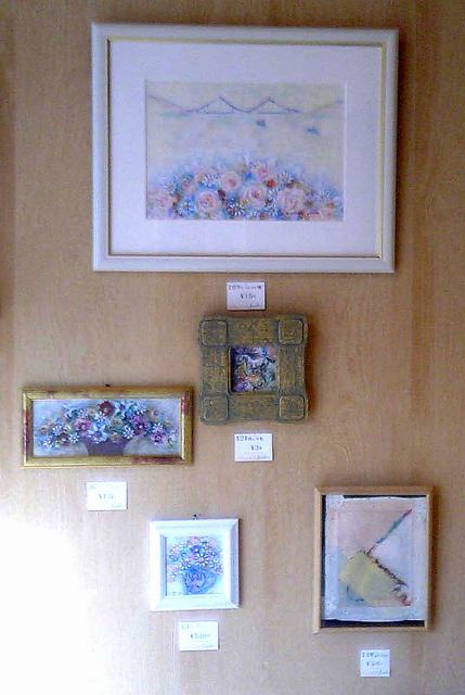 ジュンコさんの作品は、明るい色彩と、花や蝶などのモチーフが多く、見る人の心を和ませてくれます。