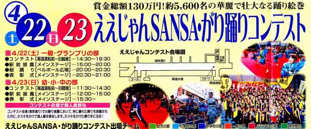 創作踊りコンテストの「ええじゃんSANSA・がり」は、22日と23日の両日合わせて5000人が参加するそうです。