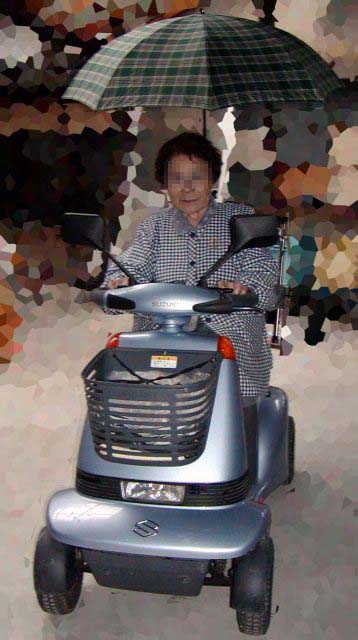 スズキの電動4輪車に、雨の日に頭が濡れないように、傘を取り付けて欲しいとの、ご要望があり、レイン棒2を、加工して取り付けました。