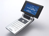 シャープの905SHの大きな特徴は、液晶部を90度回転させると左右対称な横長画面になるサイクロイド型機構。