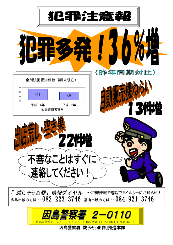 広島県の犯罪率も、全国平均でも悪い方に入っています。