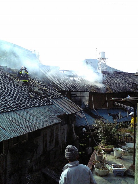 花園横の防波堤からも、煙が上がっているのが見えましたが、消火が早く、昼間と言うこともあって大事にいたりませんでした。