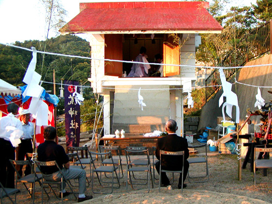 5日は前夜祭で、宮司初め、区の役員が、玉ぐしを奉納し、お払いを受けました。