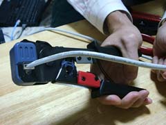 店舗で、ハブを置くようになったら、コネクター部分を切断して、クロスにして、コネクターを圧着すればよいであろう。と、こんな按配に、圧着器具があると便利なのです。