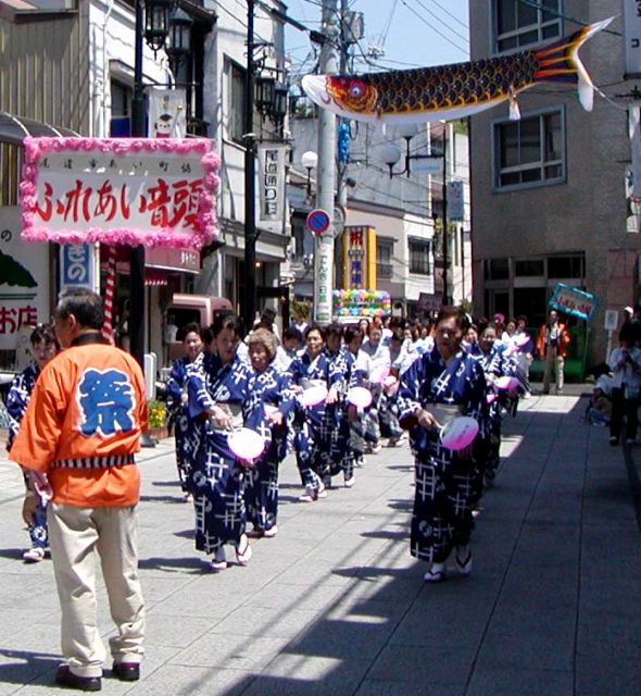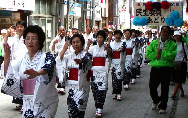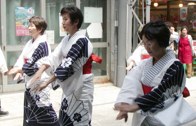 みなと祭パレード 2007/05/01 by 村上 光 0 日曜日の商店街をパレードするのは、大人の踊です。民生委員の皆さんの踊がパレードしていました。 因島からも、参加していました。 衣装もおそろいで、踊も決まっていました。スリスリ、(ゴマすりの音。) 尾道市全体からの参加なので、大所帯の踊グループでした。 商店街では、鯉幟が飾られていました。