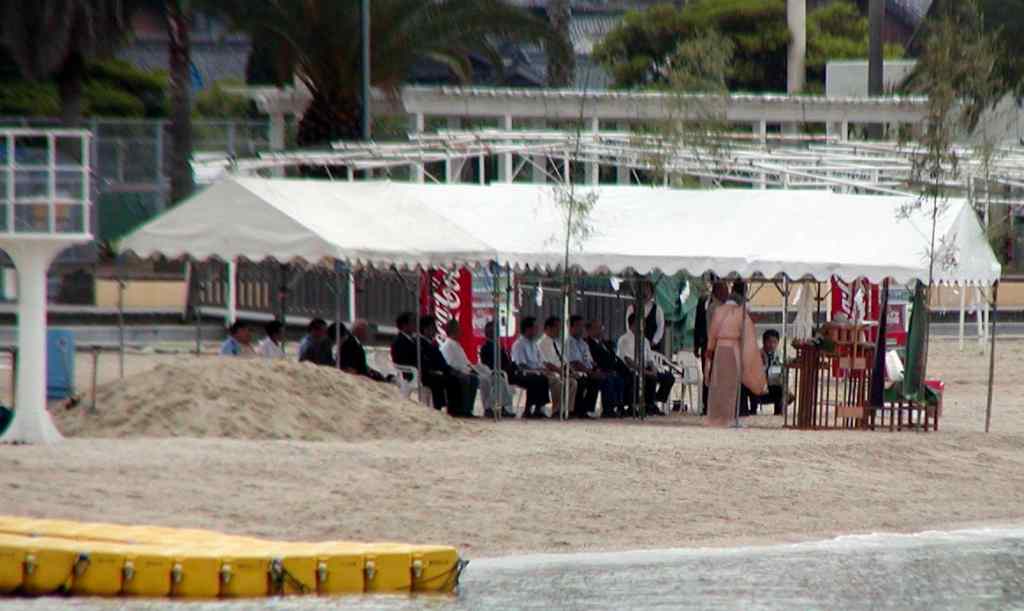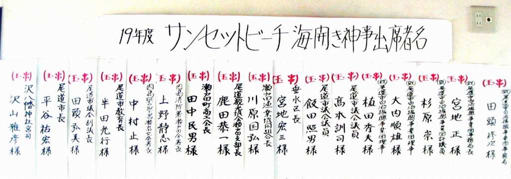 サンセットビーチが安全に、多くの人が楽しめのように、玉串を奉奠しました。