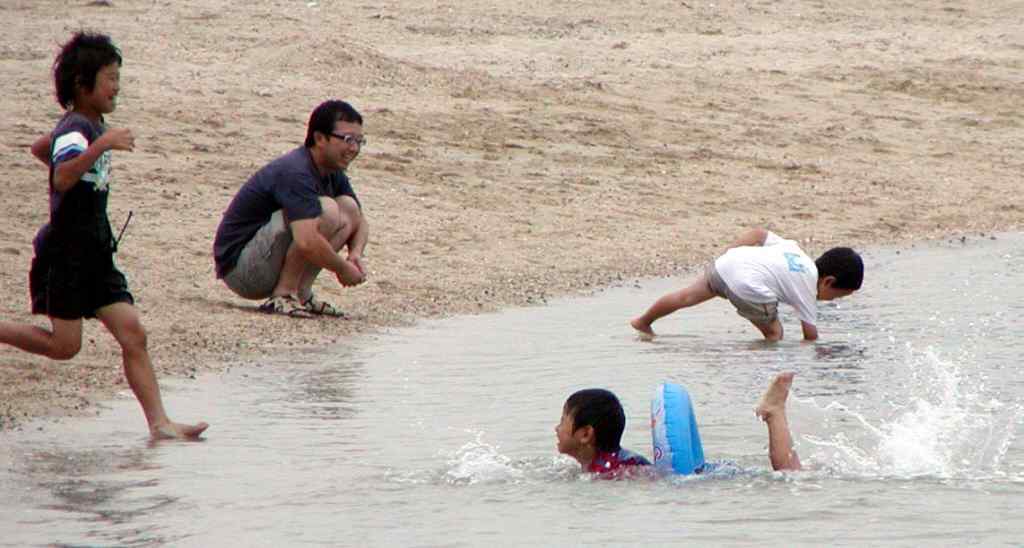 一番正直なのは、子供づれの海水浴客で、午前中の雨で、震えながらの初泳ぎでした。