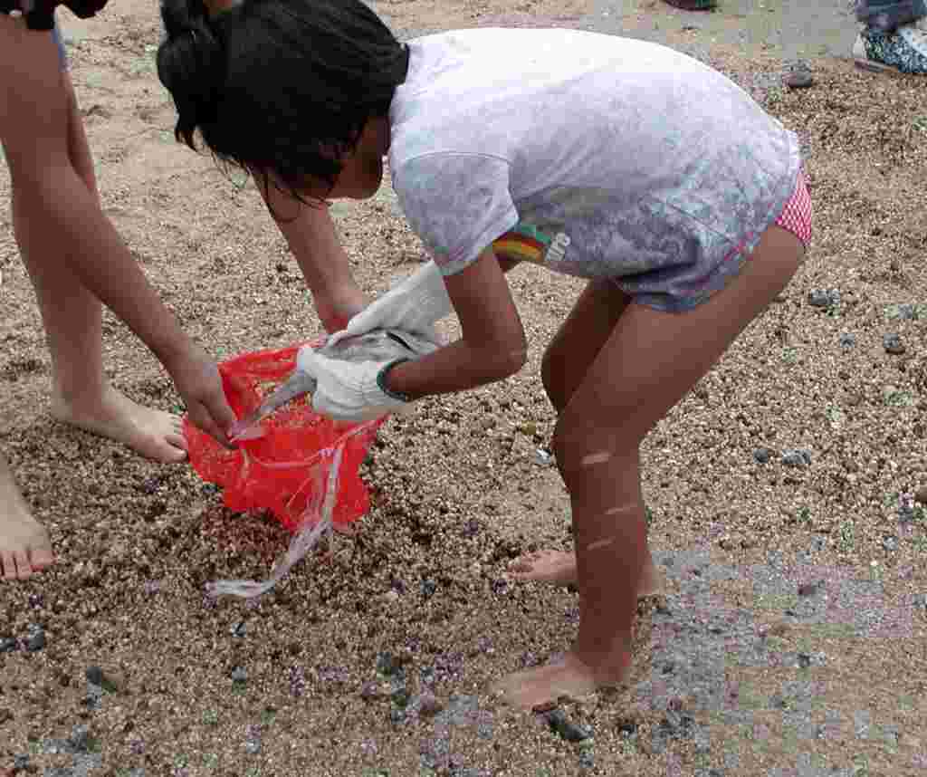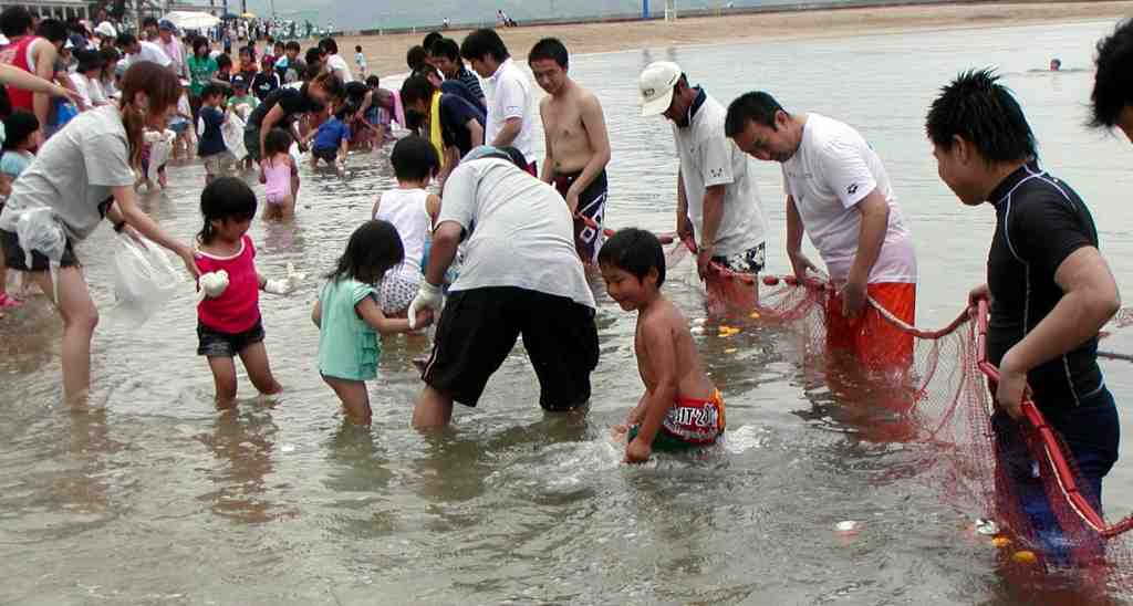 サンセットビーチ海開き恒例の、魚の掴み取りが開催されました。