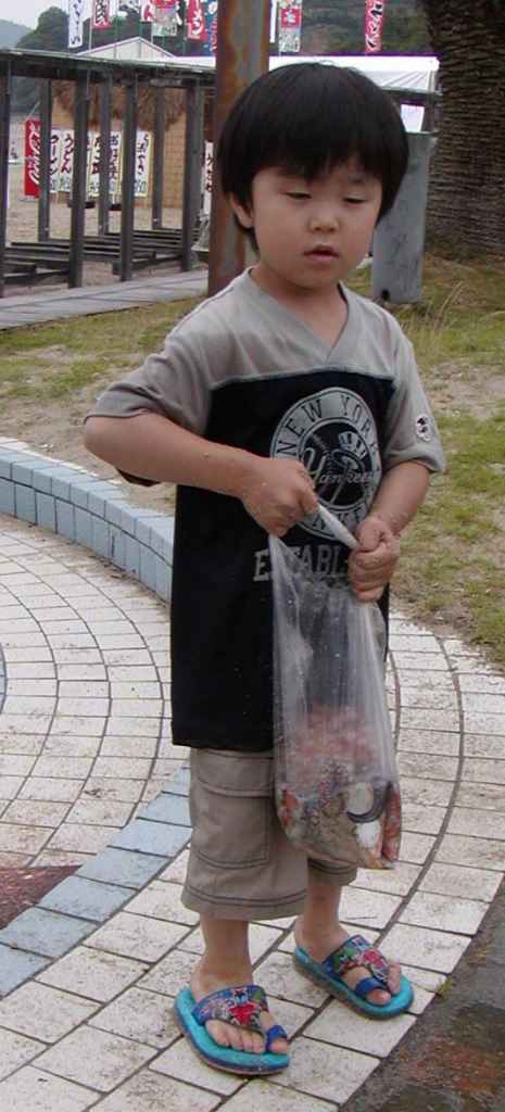 鯛をゲット、本人は恐る恐るですが、家族の声援は、「鯛だー。鯛に行け!突っ込めー」などの、凄まじい声援というか、プレッシャーというか、大変なイベントです。