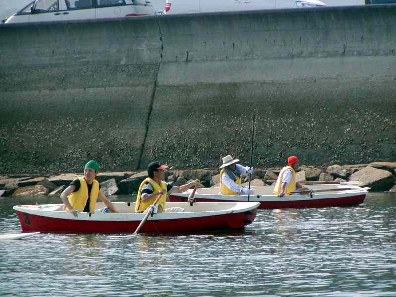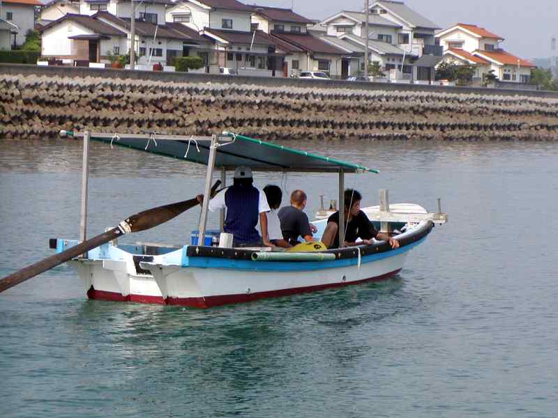 櫓で進むボートも安全ですが、技術と体力勝負です。