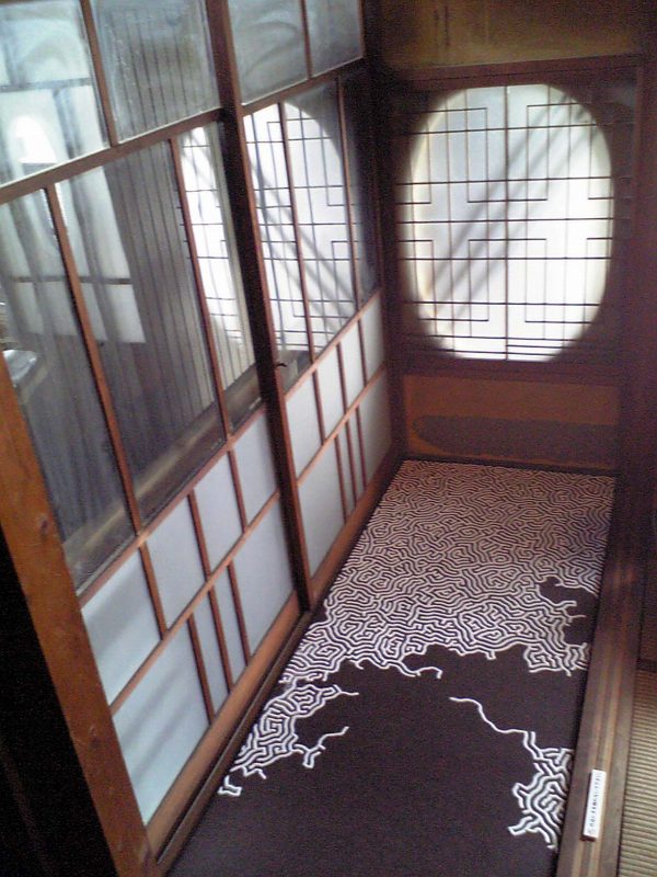 床に防水シートをはり、塩を石庭の模様のように使って、表現しています。